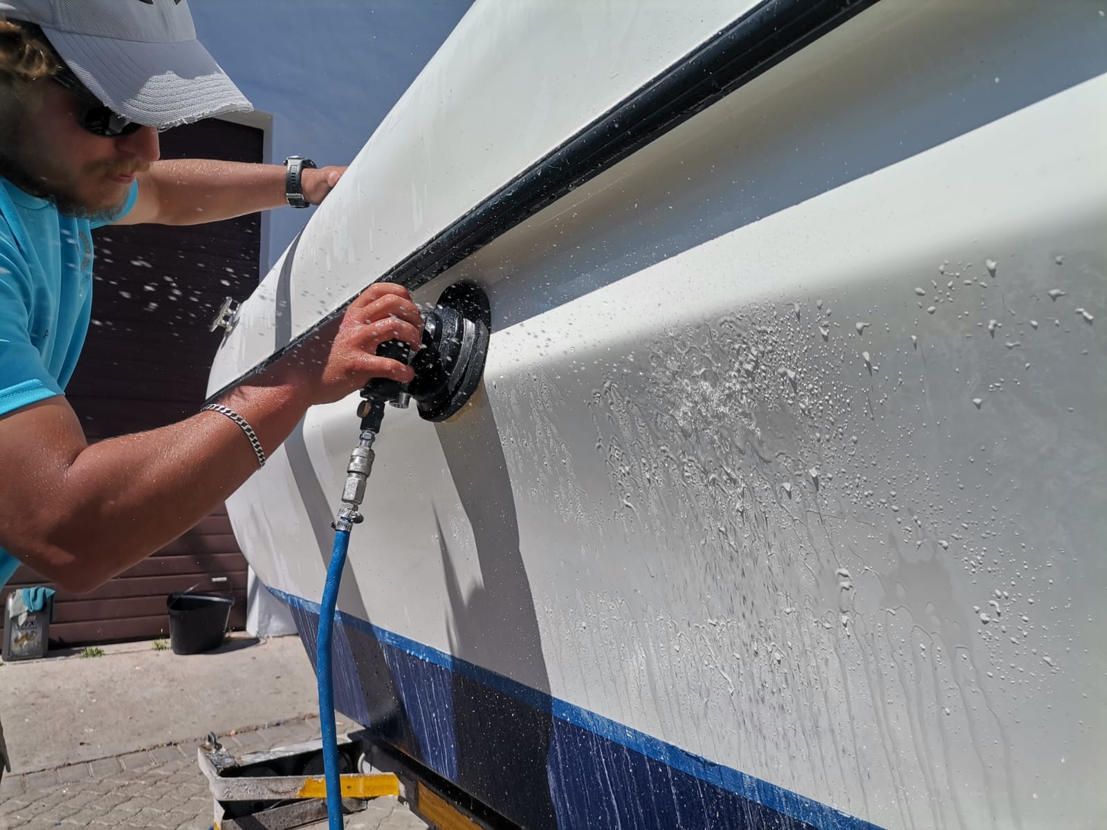 This package includes a marine wash that provides a comprehensive foam cleaning throughout the whole boat, as well as a 2 step Polershine 35 & 05 polishing system and will be sealed with Apex Ceramic Nano Shield
