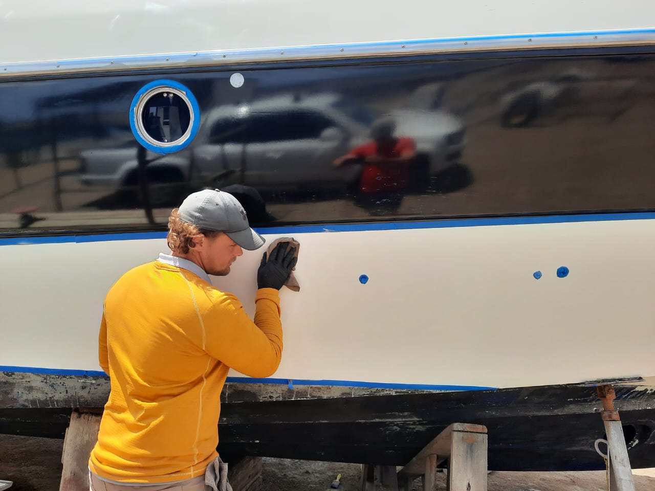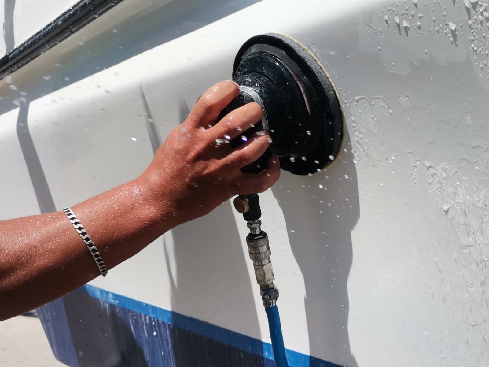 Watch A&D Boat Services work their magic! Witness our expert polishing turn this boat into a shining masterpiece. Stunning results, professional care!”